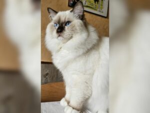 Notre mâle ragdoll est une "crème" de chat. Joueur, tendre, bavard, il s'est s'imposer au quotidien pour récupérer sa chaise ou encore nous faire comprendre ses besoins. Ses yeux océan en font craquer plus d'un.
